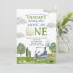 First Birthday invitation with a Golfing theme. Edit and personalize the design for your celebration. Features golf cart, golf club, golf balls, watercolor art work.