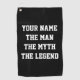 L'homme le mythe le cadeau drôle de serviette de golf de légende. Présents personnalisés pour lui. Cadeaux jouants au golf décorés d'un monogramme pour les hommes et des femmes. Modèle moderne de typographie pour le nom ou le nom de famille. Les idées humoristiques de cadeau d'anniversaire pour le golfeur, le mari, le papa, le père, l'ami, le travailleur de Co, le patron, le collègue, l'entraîneur, l'instructeur, l'éducateur, le professeur, le grand-papa, la personne retraitée, l'amant légendaires etc. de golf ajoutent votre propre nom de famille ou citation drôle. Y compris le crochet pour l'accrocher. Accessoires uniques de golf pour les amis et la famille.