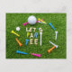 L'invitation à la partie Golf Par avec balle de golf et tee - shirts colorés est sur l'herbe verte.