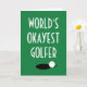 Carte de vœux drôle pour golfeur "Meilleur golfeur du monde" . Cartes de vœux personnalisées spéciales pour joueur de golf, ami, collègue, famille, fils, fille, mari, femme, maman, papa, petit ami, petite amie, patron, partenaire commercial, enfants, entraîneur, instructeur, enseignant, ami, petit-fils, etc. Balle de golf blanche sur le bord de la conception de green de trou de putting. Format très grand et extra large également disponible. Parfait pour les amateurs de golf. Cette carte physique réelle est envoyée directement en ligne par l'entreprise d'impression Zazzle au destinataire. Idéal pour un anniversaire, une retraite et plus encore.