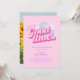 This pink party invitation features a disco ball and retro typography, giving it a fun and playful vibe. The front of the invitation is adorned with a pink background and a glittering disco ball, setting the tone for a lively and energetic celebration. The retro typography adds to the theme, giving the invitation a nostalgicically chic feel. On the back side of the invitation, custom photos of the birthday girl and her friends are featured, adding a personal touch to the design.