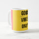 Bold 90s maximalist design for people who take their bedroom aesthetic seriously. The Good Vibes Only Mug brings Golden Yellow, Coral, and retro energy to your cozy home in the most unapologetic way possible. Part of the All That & A Wall — 90s Maximalist Collection.