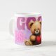 Start your day with positivity and warmth with this adorable “Good Vibes Only” teddy bear jumbo mug. Featuring a sweet teddy holding a red heart against a soft pastel background, this oversized coffee cup is perfect for spreading love and happy energy.