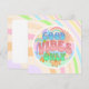 Couleurs mignonnes de style rétro violet, bleu, rose et vert Good Vibes vintage seulement citation. Fleurs, Arc-en-ciel, champignons et autres graphiques hippies amusants des années 70. Carte vierge.