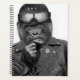 Ce design comprend un gorille habillé d'une veste en cuir, de lunettes et d'un casque.