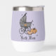 Un Halloween "Goth Mom" design de la collection gothique "A Baby is Brewing" baby shower d'automne. Il présente une carriole victorienne ancienne dessinée à la main, de la corneille noire et des citrouilles à l'encre noire, le tout contre un élégant arrière - plan violet. Texte éditable "Goth Mom" en dessous. Customisez avec n'importe quel texte pour le rendre unique. Fait une grande faveur du Baby shower gothique d'Halloween !