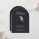 A cute but also goth baby shower invitation featuring "A sweet little dragon will hatch soon" in delicate bluish grey modern typography and stylish script on an anthracite background, plus a sweet drawing from a dragon egg.