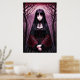 Portrait d'une gothique anime avec de longs cheveux noirs et une robe noire et rouge debout dans une forêt sombre. C'est un art généré par l'IA.
