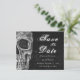 Tête de crâne gothique Enregistrer la date vintage noir et blanc Hallomariage carte à plat budget faire-part de mariage. Amusant, éffrayant Halloween goth Jusqu'à la mort Do Us Part script. Copyright de l'image Marg Seregelyi Photography.