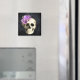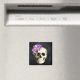 Ajoutez un style gothique à votre décor de cuisine d'Halloween. Le design présente un crâne floral blanc sur un arrière - plan à texture noire. Le crâne est accentué d'un beau rose violet.