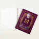 Gothique Floral Crâne Magenta Personnalisé Monogramme Nom Planificateur. Nom personnalisé et monogramme gothique planner avec crâne portant couronne de fleurs entourée de vintage bordure de tourbillons baroques, toile d'araignée de fleurs et chauve-souris sur arrière - plan noir en détresse.
