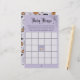 Ce jeu de Baby shower d'Halloween s'appelle "Bingo Bébé". Le design : Sur le devant, une carte de jeu BINGO avec des instructions. Sur le dos, un motif dessiné à la main à l'encre noire, avec des chariots de bébé victoriens, des corbeaux noirs, des toiles d'araignée, des citrouilles et de minuscules champignons, le tout contre un élégant arrière - plan mauve et doux. Comment jouer : Chaque invité reçoit une carte de Bingo. Avant que Maman-to-Be ouvre ses cadeaux, chaque invité remplit les carrés de cadeaux qu'il croit que Maman-to-Be recevra. Au moment où elle déballe chaque cadeau, les invités croisent cet objet cadeau sur leur carte. Le premier invité à obtenir 5 de suite gagne.