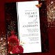 Floral rouge gothique, plaque rouge et noire, invitation de mariage à fleurs d'or. Faux or Feuilles floraux. Couleurs de police de script avec une police de nom serif facile à lire. Facile à adapter à vos besoins mariages.