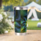 Gourde Isotherme Abstract Star, Shiny Blue Green Golden Fractal Art
