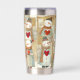 Insulated tumbler featuring a whimsical pattern with snowmen carrying warm red hearts. The pretty earth tones make this tumbler a welcome addition to your space. Also a nice gift for Valentine's Day!