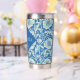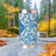 This stylish Monogram William Morris Floral design features a blue and cream floral pattern with a diamond initial and name monogram. This beautiful insulated tumbler keeps drinks hot or cold for hours, making it a perfect, personalized gift for women who love Art Nouveau and appreciate elegant, practical accessories for home or travel. Created by Simply Farmhouse Press.