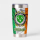 Le blouson irlandais Ahearne/Aherne, entouré d'un badge noir et blanc, est joliment exposé sur ce chaudière isolé. Dotée du drapeau irlandais en arrière - plan, cette tumbler garde les boissons froides et chaudes chaudes ! Prenez le travail, les réunions de famille, donnez comme un cadeau et mieux encore, prenez votre boisson préférée "sur le chemin". Peut aussi être personnalisé ! Erin go Bragh !