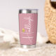 Gourde Isotherme Bridesmaid | Nom de script minimal Gold Heart Pink