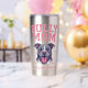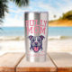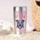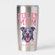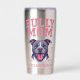 Bold pit bull artwork for proud dog moms who love strong, loyal dogs. Featuring a powerful bully-breed illustration on both sides, with texture-look pink varsity-style pink lettering. This graphic is perfect for pit bull fans, and anyone who knows their pup is as fierce and fearless as momma! Show off your love for big-hearted bullies with this cute custom stainless steel cup. The tumbler is insulated to keep hot drinks hot and cold drinks cold.