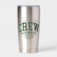 Christmas Crew Personalized Family Name Insulated Tumbler features the text "Christmas Crew making memories together (add personalized name)" in modern green script typography. Perfect for Christmas gifts, family Christmas parties, family reunions and holiday celebrations and more. Created by Evco Studio www.zazzle.com/store/evcostudio