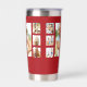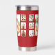 Un arrière - plan rouge. Personnalisez et ajoutez un collage de 7 photos, des initiales monographiques et le nom complet. Texte blanc.