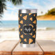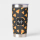 Cool et amusant tranches de pizza motif gris foncé Tumbler isolé. Monogramme Personnalisez avec votre initiale et votre nom personnalisés. Pizza motif cadeau unique pour les gourmands, restaurateurs, pizzerias.. Pizza juteuse à croûte croquante, fromage, salami, champignons champignon, olives et une saupoudrée d'origan.