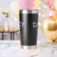 White Black Dad Established New Dad Gift - Classic Bold Travel Tumbler - Customize with the "Est" established Year date when he became official. Perfect Modern Bold style to give as a gift to celebrate that new Dad!