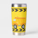 Cool de construction personnalisée pelle cadeau pour un enfant qui aime les véhicules de construction jaunes en noir et jaune. Un cadeau amusant pour un petit garçon qui aime les voitures et les camions. Customisez avec le nom de votre enfant sous le ruban de prudence noir et jaune. Le dos est équipé d'un camion à benne.