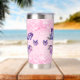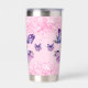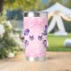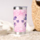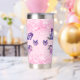 Arrière - plan rose ceint décoré de papillons violets, fleurs roses et violettes, confettis roses. Personnalisez et ajoutez votre nom.