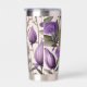 Tumbler thermique en acier inoxydable avec un design botanique de fleurs violettes et de verdure. Personnalisé avec votre monogramme/initial