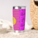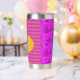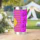 Happy Big Modern Orange Pumpkin on Purple and Pink Geometric lines.