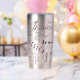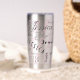 A custom name tumbler showcasing "Jessica" in multiple styles over a background script initial "J". The black, pink, and silver colors offer a timeless look, ensuring your drink remains yours with the prominently displayed name.