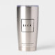 Logo personnalisé simple noir moderne isolant vitre en inox. Températeur thermique inoxydable minimaliste avec informations commerciales, nom de l'entreprise, marque, URL du site, slogan ou logo. Idée de logo d'entreprise élégante et chic pour les clients, partenaires, événements d'entreprise, cadeaux d'entreprise, employés, patron, cadeaux de bureau. Utilisez ce simple tondeuse thermique moderne pour le café chaud, le thé chaud ou les boissons froides.