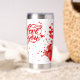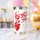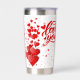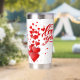 White water bottle with lots of red hearts and love you sign