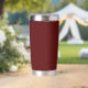 Show off your personal style with this maroon insulated tumbler featuring custom brand text. The rich maroon color provides a bold, elegant backdrop for your personalized design. Its insulated construction keeps drinks hot or cold for longer, making it ideal for coffee, tea, or cold beverages at home, in the office, or on the go.