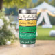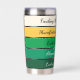 This tumbler design features a clean, modern Saint Patrick’s Day palette arranged in smooth horizontal bands—from deep emerald at the base up to soft cream at the top. The colors create a fresh, trendy look: a rich dark green foundation, layered with medium and bright shamrock greens, accented by a warm golden stripe, and finished with a soft, glowing cream tone. The palette feels uplifting, stylish, and lightly festive—perfect for a chic St. Patrick’s aesthetic. Up to 5 phrases can be placed on the tumbler in a sleek, minimal, modern typeface for a fresh and trendy look.