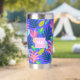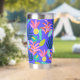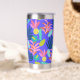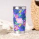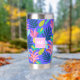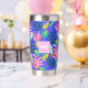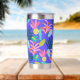 Monogramme bleu floral sur mesure mignon Tumbler thermique avec initiales, nom, citation, message. Joli motif moderne coloré avec ananas, fleurs pour un cadeau unique. Bouteille thermique couleur bleu rose jaune pour femmes, mères, mamans, femmes, enseignants, patron, amis, filles, accro au thé pour les anniversaires, noël, jour de la mère. Utilisez ce tondeuse inoxydable pour le voyage, le transport pour le thé chaud, le café chaud, les boissons froides.