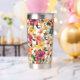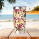 Gourde Isotherme Monogramme Tropical Rouge Jaune Hibiscus Fleurs