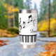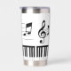 Modern, personalized music-themed tumbler featuring a piano keyboard and music notes with a name, monogram or custom text in your choice of colors and font styles (shown in black and white). Ideal for music teachers, musicians and music professionals. ASSISTANCE: For help with design modification, contact the designer BEFORE ORDERING via the Zazzle Chat MESSAGE tab below or email makeitaboutyoustore@gmail.com.