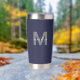 Le design est composé d’un arrière - plan noir élégant avec une initiale grise et audacieuse sur les deux côtés, superposée par votre nom dans un élégant script blanc pour une touche personnalisée que vous verrez sous tous les angles. Avec son monogramme double face et son design fonctionnel, cette tasse est idéale pour boire du café ou du thé en déplacement, que vous soyez en déplacement, en classe ou en jet-set à travers le monde. Toutes les couleurs peuvent être customisées pour correspondre à votre style. Un grand cadeau pour les mamans, les soeurs de sororité, les meilleurs amis, ou toute personne qui aime un peu errer avec leur boisson matinale!