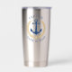 Thème nautique personnalisé, acier inoxydable, tumblers isolants avec "Capitaine" (ou autre grade ou titre) et votre nom de bateau, nom de famille ou autre texte souhaité. Ce design comprend une ancre de bateau sur mesure en bleu marine accentuée d'une étoile dorée et de feuilles de laurier royal d'or.