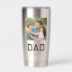 Cadeau de gobelet simple en acier inoxydable avec photo et texte modernes pour papa - Célébrez les papas, les nouveaux papas et les futurs papas le jour de la fête des pères avec ce design de gobelet moderne présentant une photo préférée de papa avec le mot « PAPA » dans une typographie moderne de style collège noir en dessous, ainsi qu'un espace pour que vous puissiez personnaliser avec une année ou des années « Ét. » en dessous pour indiquer quand il est devenu papa. Vous pouvez également remplacer "Papa" par Papounet, Dada, Papa, Papi ou tout autre petit nom que vous préférez utiliser. Tous les détails sont répétés des deux côtés.