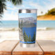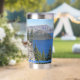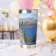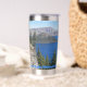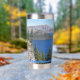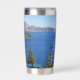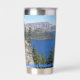 Un tondeuse thermique en acier inoxydable branché pour vos boissons chaudes ou froides, avec une photo de l'île Wizard et du lac bleu saphir dans le parc national du lac Crater pittoresque, en Oregon. Un souvenir de voyage exceptionnel !