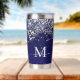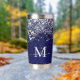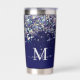 Elégant bleu marine avec holographique parties scintillant argenté isolant tumbler. Personnalisez-le facilement avec votre initiale et votre nom. Fait un cadeau personnalisé unique. c) Le Happy Cat Studio.