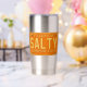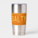 Travel back in time to the year 1969 with this vintage-inspired "Salty" Florida license plate design, complete with realistic screws to keep an authentic vibe. Bold embossed-style yellow text pops on the orange contrast. The use of vintage-style lettering and Sunshine State slogan brings a nostalgic and playful feel. Perfect for the beach, boat or as a statement piece for your daily routine. This stainless steel tumbler is insulated to keep your drink hot or cold.