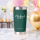 Ajoutez une touche personnelle à votre mariage avec un cadeau de toiletteur personnalisé. Ce design présente le nom de marionnettiste personnalisé en blanc style de police de script moderne et monogramme en vert émeraude clair style de police de script moderne comme arrière - plan avec titre et date mariage en blanc moderne sans serif style de police sur arrière - plan vert émeraude. Parfait aussi pour femme de ménage d'honneur, fille de fleurs, mère de la mariée, groomsmen, meilleur homme, père de la mariée et plus encore.