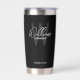 Monogramme et cadeaux de nom minimaliste moderne Personnalisé Ce design présente un nom personnalisé en blanc moderne écriture script style de police et monogramme en gris clair moderne style de police sans serif comme arrière - plan, avec des détails mariages en blanc moderne sans serif style de police sur arrière - plan noir. Aussi parfait pour le meilleur homme, la servante d'honneur, les demoiselles d'honneur et plus.