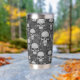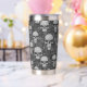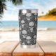 This thermal tumbler with it's design of skulls and dark symbols would be a great addition to any goth or alternative home.