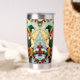 A sweet Christmas tumblrt, with two cute vintage fairy elf kids sitting on a branch covered in snow and red berries. A sweet elves illustration to give off vintage vibes and will add a cute retro touch to your Christmas décor!