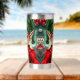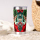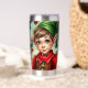 A sweet Christmas tumbler with a cute elf cartoon and a festive background.